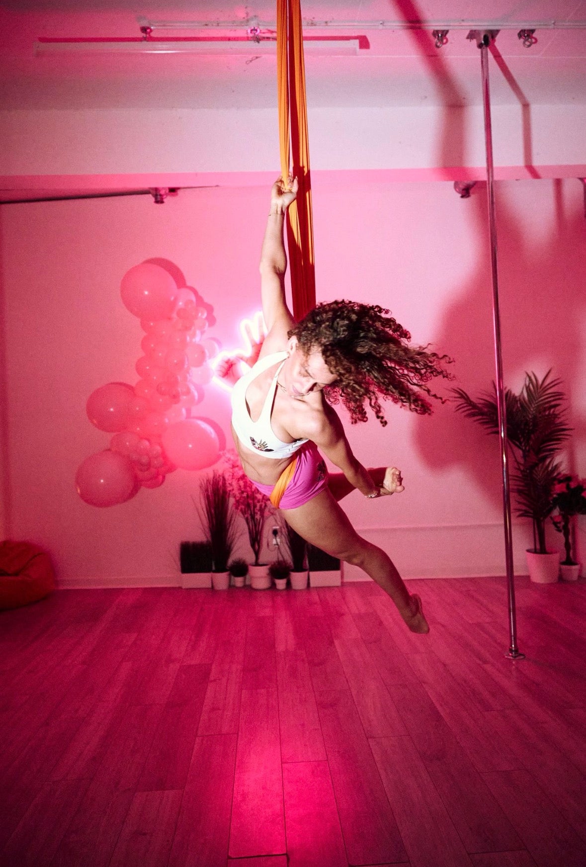 Featuring an array of poles, aerial hoops and aerial hammocks, the newly refurbished studio provides a range of pole fitness, aerial yoga, pole dance, dance, yoga, flexibility and aerial hammock classes for all skill levels.